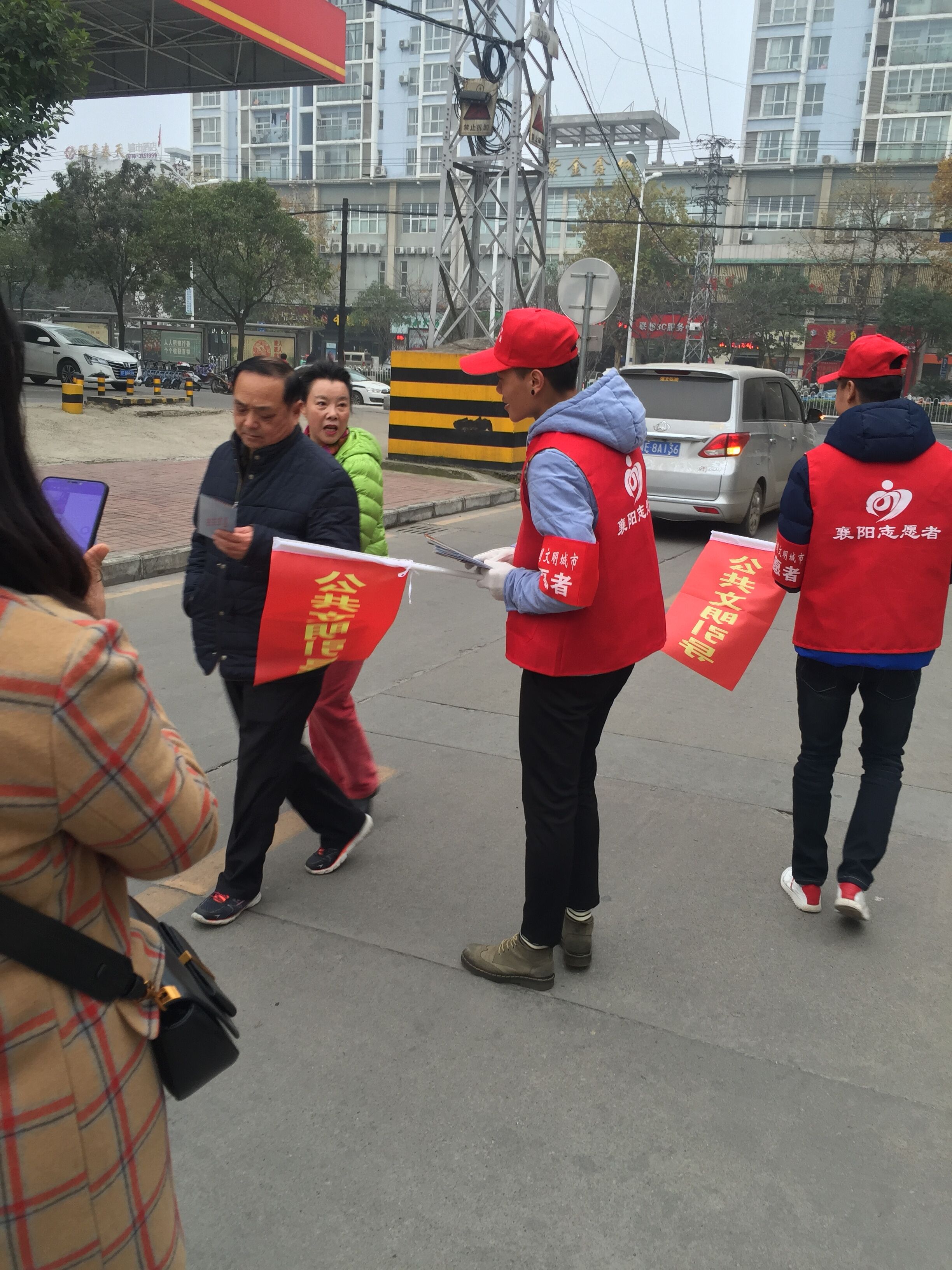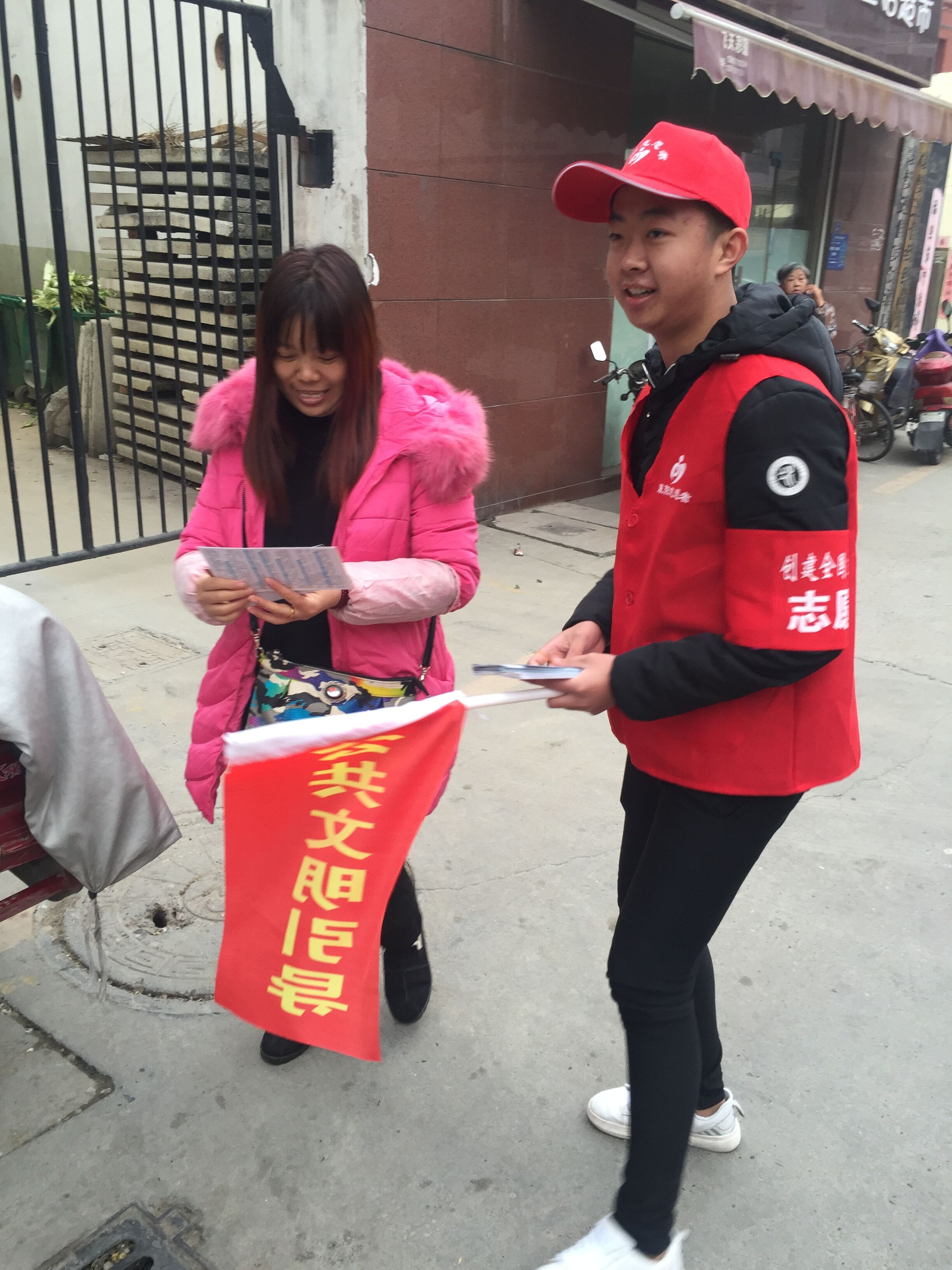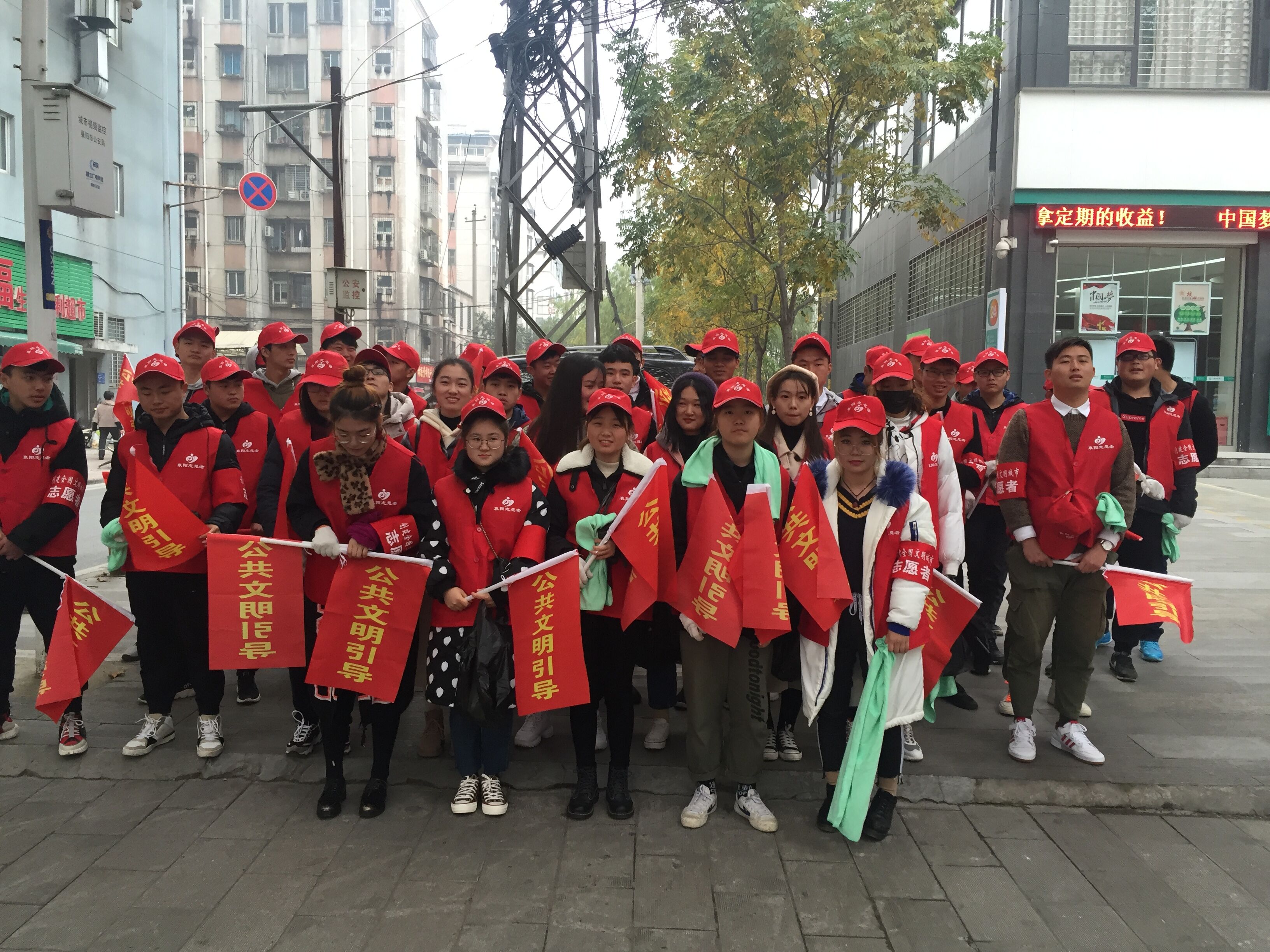 虽然天气比较冷,但是同学们热情高涨。到了服务地点以后,在社区工作人员的安排下,同学们分为站台引导组、入户宣传组和喇叭巡游组,在社区管辖的范围内对创文工作进行宣传。同学们保持着积极的态度,与路人讲解宣传创文工作的意义,积极引导乘客排队上车,并为老弱病残乘客让座。当志愿者走进一个社区时,发现社区路上落叶很多,志愿者们主动提出要打扫卫生,同学们的举动得到了市民和社区工作人员的一致好评。相信在我们的参与下,我市创文工作一定会取得优异的成绩。