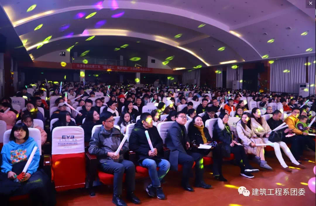 11月21日晚,建工系在大学生活动中心三楼举办“情系理工 执梦远航”主题元旦晚会,晚会邀请到了团委书记学工处副处长桂梦怡老师 , 建筑工程系主任张素香老师 , 建筑工程系党委副书记付明星老师,建筑工程系副主任刘琦良老师,学工处团委武装部温斌清老师以及建工系各位专业课老师及辅导员等。