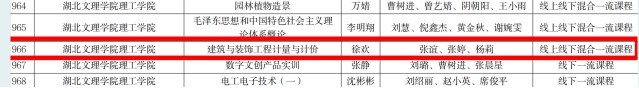 (建工学院 徐雅妮)11月5日,《省教育厅办公室关于2024 年湖北高校省级一流本科课程申报建设工作的通知》(鄂教高办函〔2024〕9 号),根据关于2024年湖北高校省级一流本科课程拟认定名单的公示,我院徐欢老师的《建筑与装饰工程计量与计价》课程获批省级线上线下混合一流本科课程。截至目前,我院共获两门省级一流课程认定。