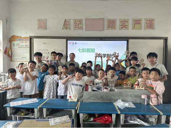 据悉,此次七彩假期活动是“建心筑梦”志愿服务队连续第四年在伙牌镇中心小学开展的服务活动,参与青少年人数也是逐年增加,2022年暑期仅有不到30名青少年参加,今年七彩假期开班首日已经迎来了该校一至五年级70余名青少年参加。此次七彩假期活动围绕“德、智、体、美、劳”五育并举和亲情陪伴、安全自护等成长服务,开展思想引领、文明生活、身心成长、科技创新、快乐学习、艺术素养、文化传承等七大板块课程,课程内容丰富多彩。