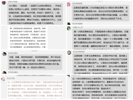 活动结束,但是志愿者们的热情和感悟不停,纷纷表示活动路途虽远、历经了一些坎坷,但是看到孩子们天真的笑脸和对我们的欢迎,一切都是值得的!