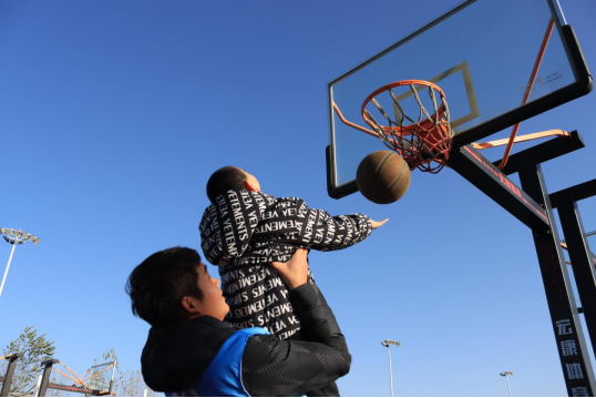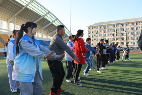 最后大学生志愿者和孩子们在操场开展了融合篮球赛,共同学习了太极基本体式等,呈现了一幅幅残健融合的生动画面。