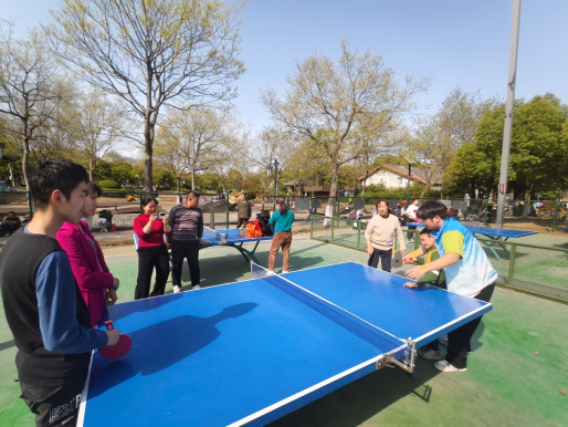 随后,“垃圾分类”趣味生态游戏和乒乓球运动环节将整个活动气氛推向了高潮。在互动过程中,残疾人家庭与志愿者们紧密配合,加油声、欢笑声交织在一起,构成了一幅温馨和谐的画面。