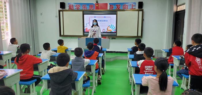 目前,新冠疫情在我国已经得到有效控制,但是外防输入,内防反弹的工作压力依然非常大。为了协助南漳县李庙完全小学做好开学后的疫情防控工作,2020年9月24日下午,伟德bv1946官网建筑工程系学生党支部的党员们,为李庙完全小学送来了消毒水、口罩等防疫物资,并由党员郭睿同学为小学生开展了新冠疫情预防知识科普,教大家正确认识新冠病毒、如何佩戴口罩以及如何正确洗手等内容。