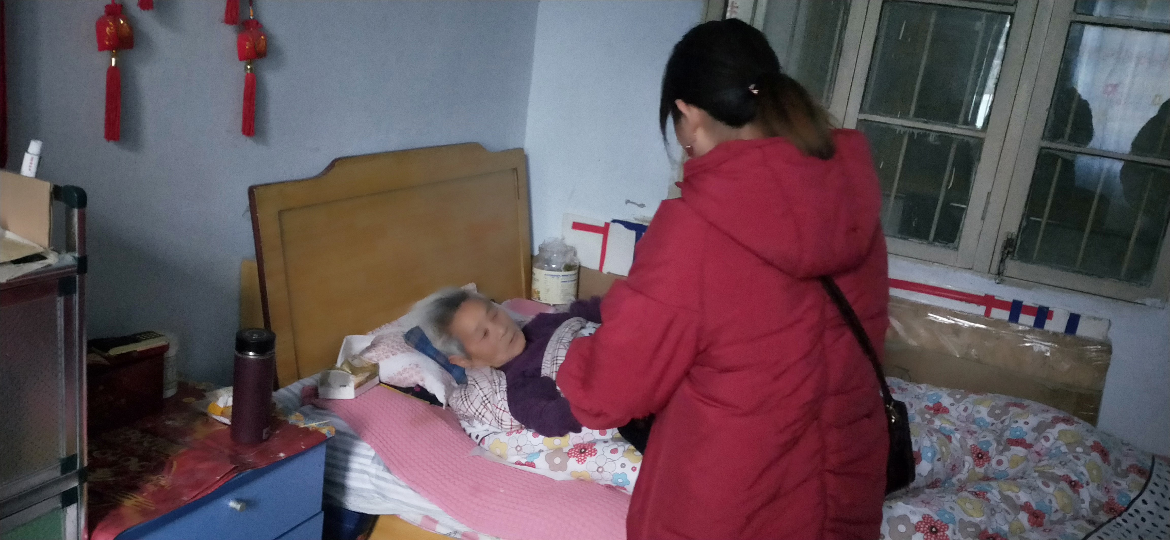 来到福利院,志愿者为老人带去了面包麦片、梳子象棋等慰问品,并帮助老人打扫卫生,同他们一起聊天,老人非常开心。