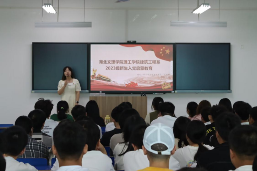 ( 建工系 汪纪婷、宋展鸿)为增强2023级新生爱国爱党精神,进一步引导和帮助新生了解党的基本知识、基本理论和入党程序,增强党在青年学生中的吸引力和凝聚力,提高大一新生思想觉悟,端正入党动机,激发入党积极性,2023年9月13号下午16:00,建筑工程系抓住新生入学关键时期,在1号教学楼307教室开展2023级新生入党启蒙教育,由建工系学生党支部书记汪纪婷老师主讲,主要内容包括建筑工程系学生支部介绍、入党动机的树立、党员发展流程、完善自我四个方面。