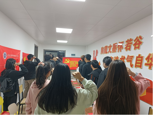 会上,全体党员同志齐唱国歌,重温入党誓词。入党誓词由汪纪婷同志领誓,通过重温入党誓词,进一步增强党员同志的责任意识,进一步坚定党员同志对党的忠诚。会上还集体学习了《中国共产党章程》、新中国成立75周年党的建设成就综述等文件。