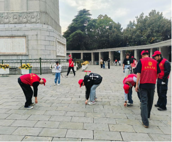 入党积极分子们在烈士陵园阶梯沿途看到了许多牺牲性命的革命烈士墓碑,学生们自发擦拭墓碑,并集体默哀悼念先烈,希望借此表达崇高的敬意。学生们还使用清洁工具,清理道路两旁的垃圾,希望以实际行动为清洁烈士陵园贡献一份力量,让革命先烈长眠之地维持洁净。