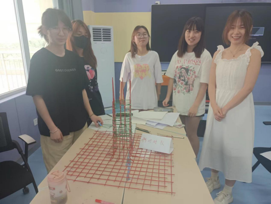 本次示范课由杨莉老师讲授《平法识图与钢筋算量》课程。课堂上,杨老师首先利用虚拟仿真软件模拟三维钢筋的布置及施工注意事项,形象直观地讲解了抽象的理论知识;其次,杨老师利用规范化表格,让学生计算钢筋工程量,绘制钢筋下料图,实际运用理论知识;最后,学生利用模型箱的工具绑扎钢筋模型,并进行展示。