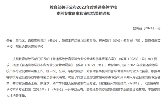 (建工学院 雷浩)近日,从《教育部关于公布2023年度普通高等学校本科专业备案和审批结果的通知》获悉,我院申请的智能建造本科专业成功获批。