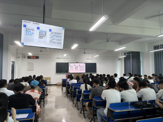 冉樱老师首先做学业相关问题的讲解。冉老师重点讲到取得毕业资格的三个条件,以及如何取得学位和学位授予的几种特殊情况。冉老师细致的讲解进一步明确毕业资格和学士学位授予资格,她希望同学们有针对性地参照相关要求,检查自己目前的主要问题并及时弥补。