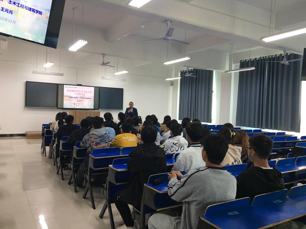 (建工系李玲、刘琦良)2022年11月10日下午,建筑工程系邀请湖北文理学院王元元博士在1教307教室举办了一场关于“路面铺装新技术交流及若干问题思考”的科研讲座。讲座由建工系主任刘琦良主持,建工系全体教师和各年级学生参加了此次活动。