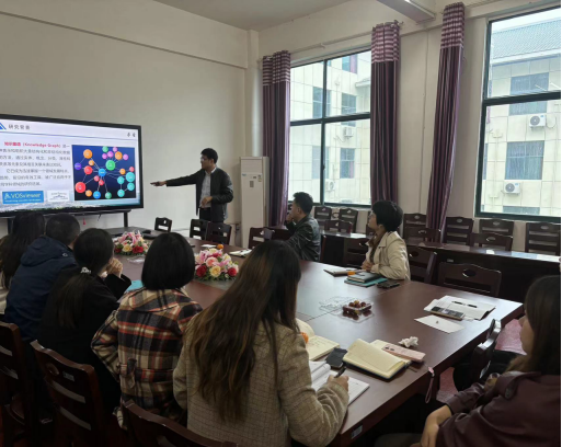 交流过程中,郭飞副教授围绕着“知识图谱构建与分析”与老师们展开了热烈的讨论与交流,认真讲解了“知识图谱发展现状”、“知识图谱建立与分析的过程”以及“利用知识图谱分析滑坡易发性问题”。