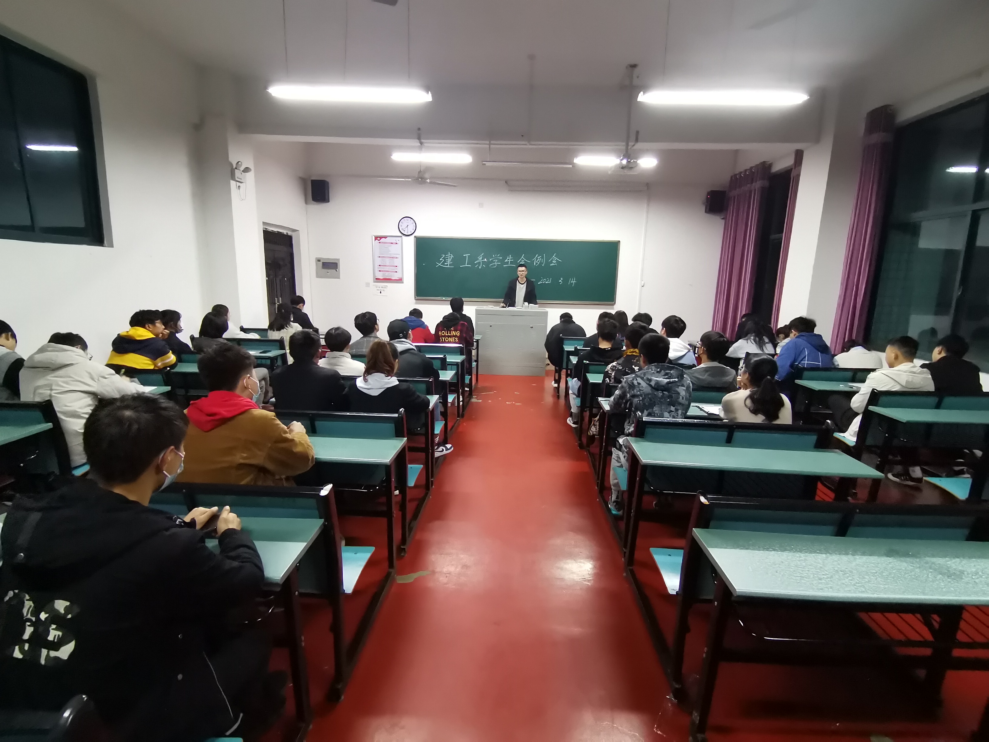 2021年3月14日晚,建筑工程系学生联合会在J4-215展开2021年第一次学生会例会,参加此次例会的有建工系辅导员路扩、建工系分团委书记覃璇以及全体学生会成员。
