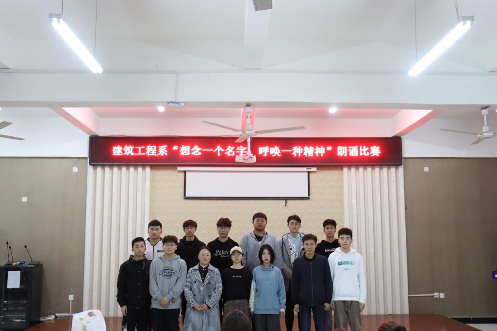(建筑工程系金帅)3月28日18:30,建工系分团委“想念一个名字,呼唤一种精神”朗诵比赛在一教104报告厅举办。建工系分团委书记覃璇、辅导员路扩出席此次比赛。