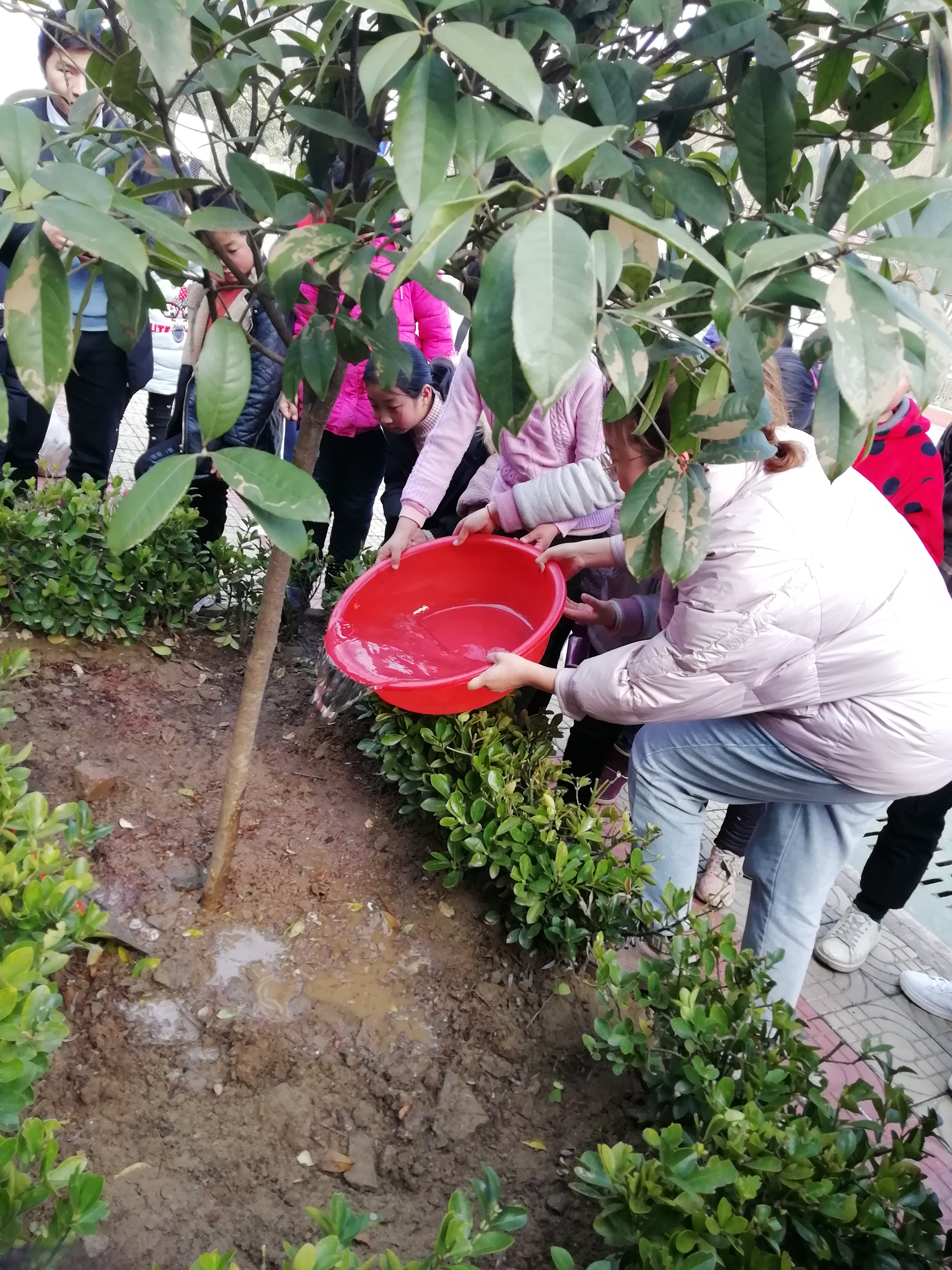 建工系全体党员与所有的小学生一同植起了幸运与奉献之树,刨土、种树、浇水。寓意奉献,友谊之树长青。旨在勉励他们好好学习,天天向上,心怀感恩,乐于奉献,为以后更好地奉献于人民,奉献于社会,贡献于祖国而种好人生当中的第一棵树,打好人生坚实的基础。