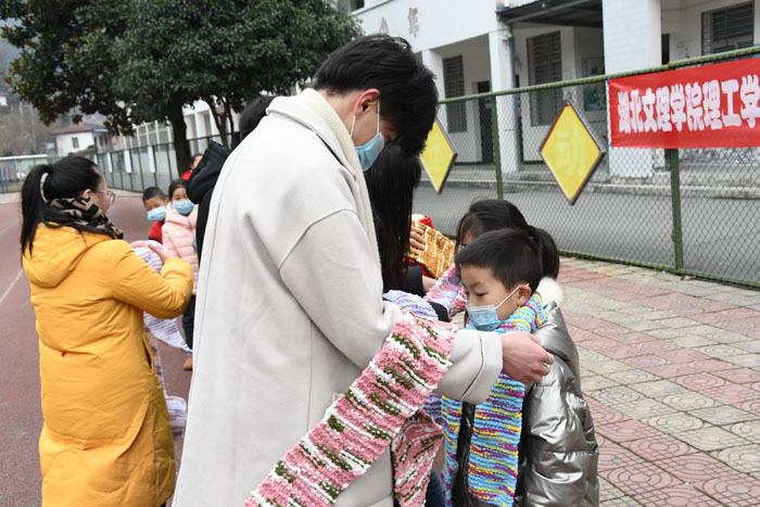 我系学生党支部为南漳李庙镇完全小学学生送围巾