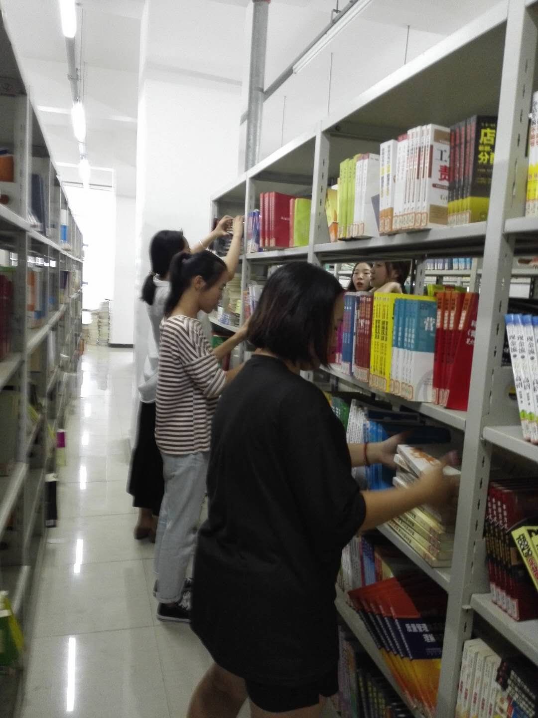 志愿者们认真聆听图书馆老师们讲解工作内容和注意事项,面对成片大量的图书并没感到烦躁和难耐,发扬不怕苦、不怕累、乐于奉献的精神,对图书进行下架、搬运,认真整理书籍和对照编码进行排序、上架。