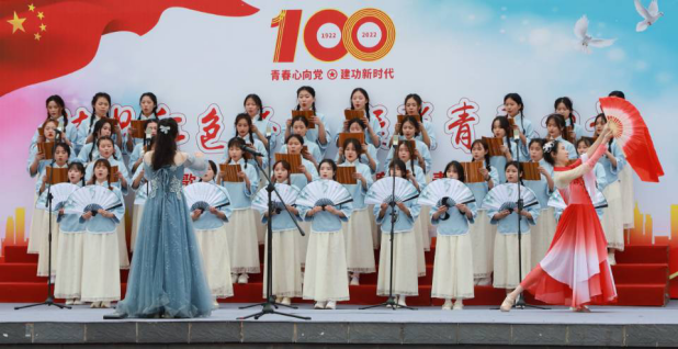树立榜样力量,唱响青年赞歌。师生代表队以大合唱、小合唱的方式参加比赛,饱含深情演绎了16首经典红歌。《歌唱祖国》《爱我中华》唱出了对祖国的无限热爱之情;《一起向未来》吹响了时代的号角,唱出了中国的希望;《灯火里的中国》唱出了灯火里的中国青春婀娜,灯火里的中国胸怀辽阔;《飞天》更是舞出了千年的飞天传说、神州启航……