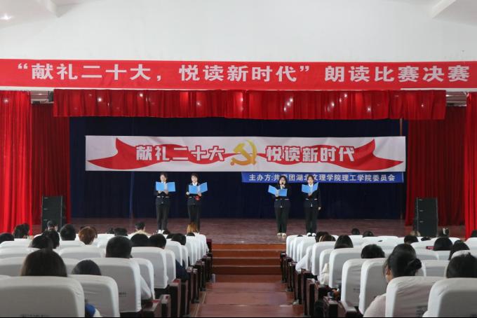 时值党的二十大胜利召开之际,为歌颂党的伟大成就,培养同学们的家国情怀,号召广大青年学子听党话、跟党走,争做新时代好青年。10月18日下午,学校在大学生活动中心三楼报告厅举办“献礼二十大·悦读新时代”朗读比赛决赛,共有12支队伍参与。