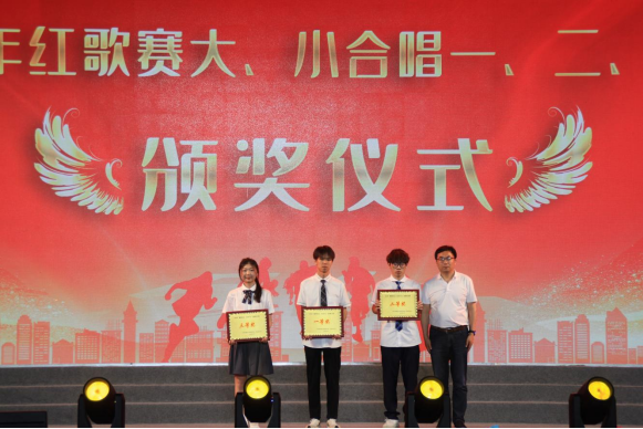 副校长耿帮才为获得小合唱一、二、三等奖的先进单位颁奖