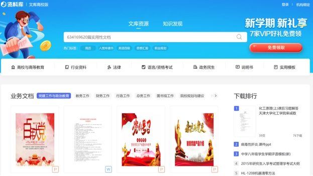 此外,百度文库高校版是应用型数据库,有别于传统文献资料库文档的格式,以Word、PPT、Excel等格式展现,能够给予日常学习工作直接的一手资料来源。读者在该平台除了专业资料、学术论文查询之外,还可进行技能培训、外语考试、资格考试等的资料的查阅及下载。