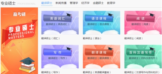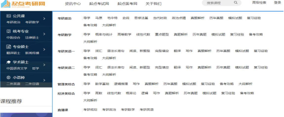 《起点考研网》的考研课程分为五大类,近30门课程。即包括考研公共课程、统考课、专业硕士、学术硕士、小语种等。