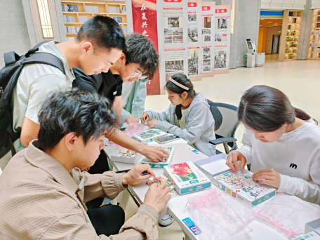 “趣味互动”设置了“历史长河拼图挑战”和“薪火相传打卡行动”两大互动环节,增强了活动的趣味性和参与度。8组主题拼图以简单和困难双模式呈现,让参与者在动手实践中重温重大历史事件;知识积累型打卡活动则通过每日答题、集章兑奖等方式,激发师生的学习热情。活动现场气氛热烈,参与师生纷纷表示这种寓教于乐的形式让理论学习更加生动有趣。