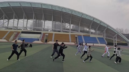 下图为未玲玲老师带领的武术校队正在进行技术强化训练。