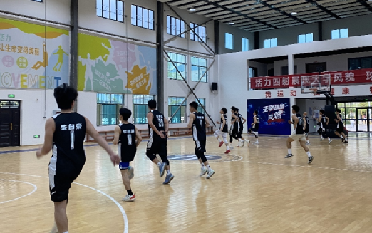 下图为篮球队男队在体育教研室主任韩聪带领下进行体能训练。