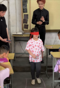 在蒙眼踏步环节中,小朋友们需要在画好的方框内蒙眼进行踏步,音乐停止时站在方框内视为成功,走出方框则为失败。同学们积极参与、热情高涨,比赛现场氛围浓厚。通过这个游戏,不仅让学生们感受到体育运动带来的激情与欢乐,也极大地激发了他们的潜能,培养学生积极挑战的勇气与信心。同时也使学生认识到在丧失视力的情况下,生活是多么的困难。