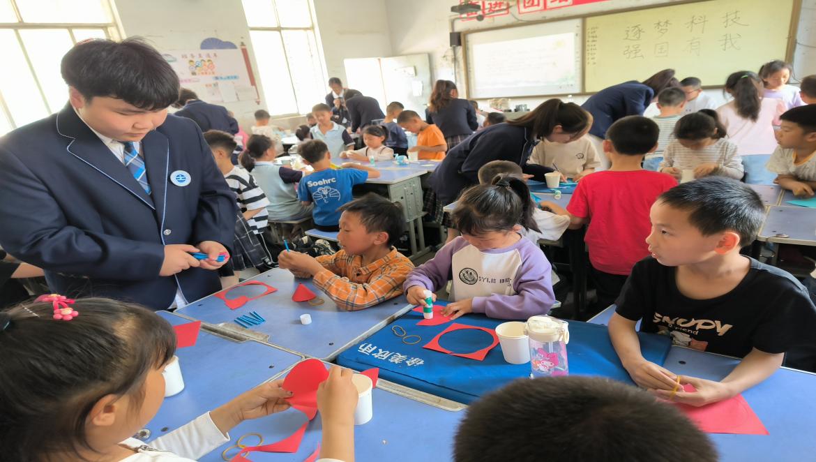 课堂上,理工学院学生通过生动的讲解和形象的展示,向小学生们介绍了中国古今科技方面的伟大成就,如四大发明、高铁、载人航天等。通过讲解这些科技成果背后的故事和意义,让小学生感受到中国科技发展的辉煌历程和骄人成绩,增强了他们的民族自豪感和自信心。接下来,理工学院学生给小学生们介绍了三位伟大的科学家和航天员——钱学森、屠呦呦、聂海胜。并通过观看其生平事迹的视频,让小学生了解到科学家们的无私奉献精神和对国家科技事业的巨大贡献,激发了小学生对科学的热爱和向往。随后,理工学院学生带领小学生们一起动手制作小火箭。在制作过程中,他们耐心指导,鼓励孩子们发挥想象力和创造力,制作出一个个精美的小火箭。