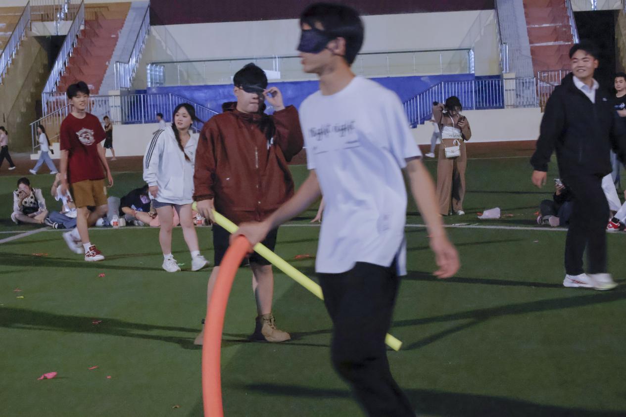 趣味游戏包括“踩气球”和“蒙眼刺客”。在“踩气球”中,同学们需保护并踩破对手的气球,考验敏捷和策略。而“蒙眼刺客”则要求参与者蒙眼依靠听觉和触觉刺杀目标,增强活动的娱乐性和互动性。