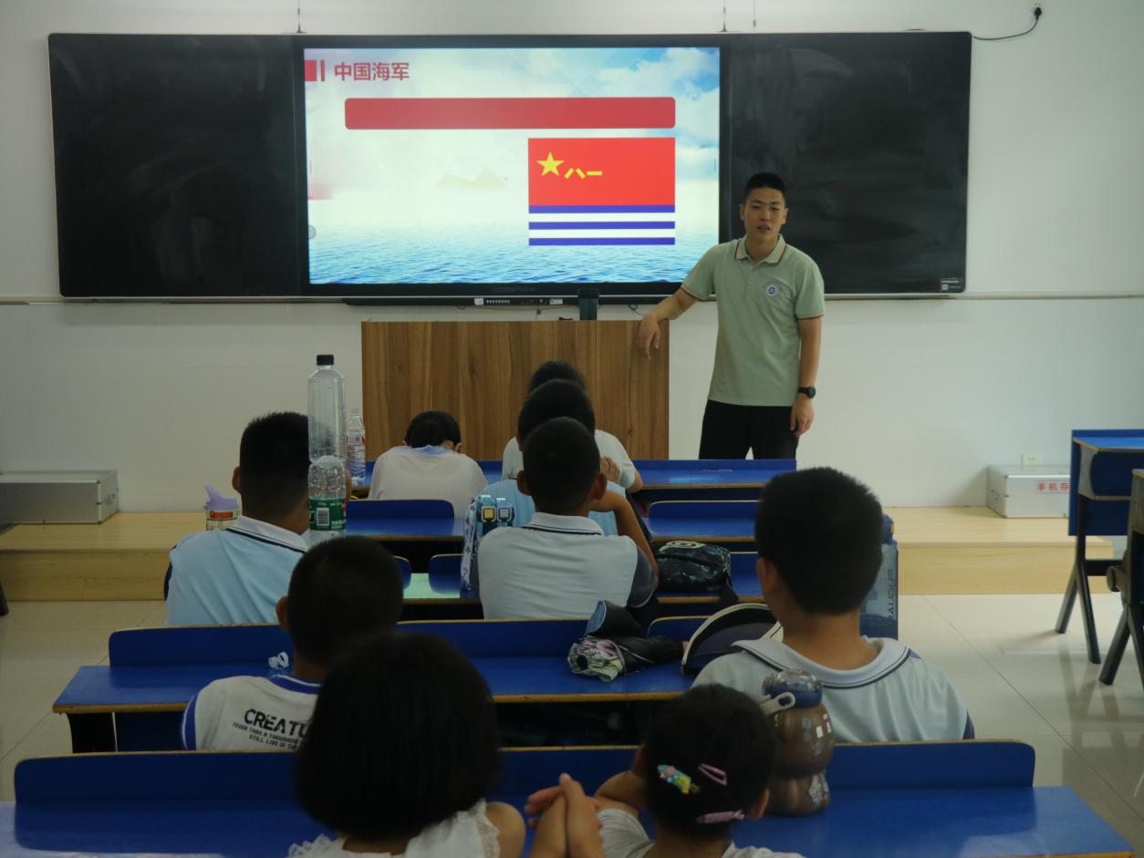 活动首日,首先由学生工作部老师王超然同社会实践团队带领襄阳市第二十六中小学生开启短暂的军训时光并开展军事讲座,小学生们激情洋溢,积极参与互动并回答问题。随后社会实践团队组织观看祖国阅兵视频,唤醒了深藏在内心里的红色记忆,让小学生们通过观看祖国阅兵画面感受祖国百年奋斗历程的光辉岁月。