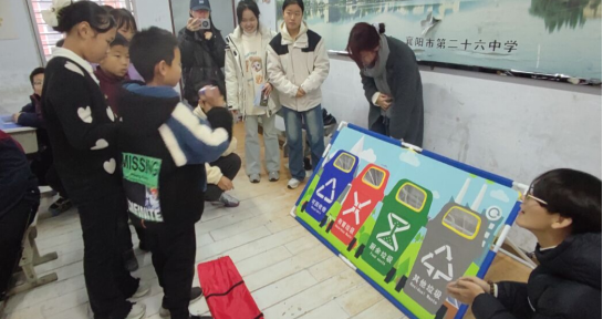 (马克思主义学院 魏子爽 白家磊)11月19日,在马克思主义学院教师魏子爽的指导下,由经管学院养老2411班的10名学生组成的授课团队,走进襄阳市第二十六中学,为五年级(1)班的全体同学开展了一场以“垃圾分类”为主题的大中小学思政课一体化教学活动,旨在通过此实践课程提高学生们的环保意识和社会责任感。