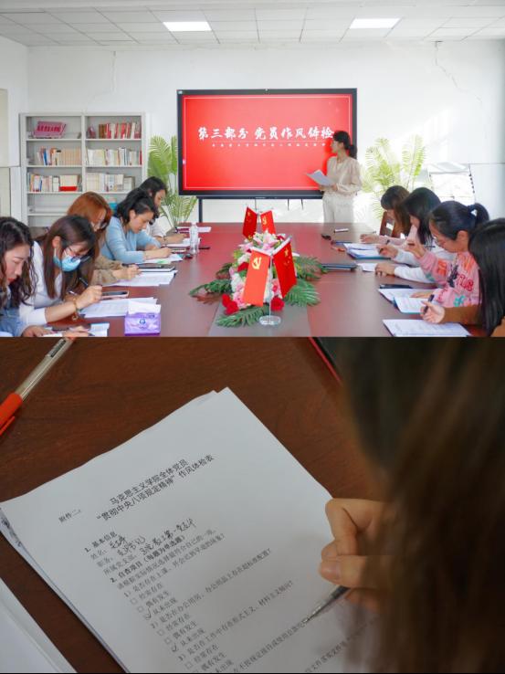 马克思主义学院院长刘慧在总结讲话中强调:“八项规定是全面从严治党的‘金色名片’,党员教师需以更高标准要求自身,将纪律意识融入教学科研全过程,为培养德才兼备的社会主义建设者筑牢思想防线。”下一步,学院将持续完善廉政教育机制,强化监督问责,以作风建设新成效护航高质量发展。
