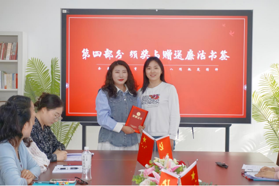 最后,马克思主义学院院长刘慧向全体党员赠送了廉洁主题书签。书签印有“崇廉拒腐”“公私分明”等警示标语,旨在将廉洁文化融入日常,时刻提醒党员恪守纪律底线。通过“小载体”传递“大理念”,进一步深化廉洁文化浸润作用。
