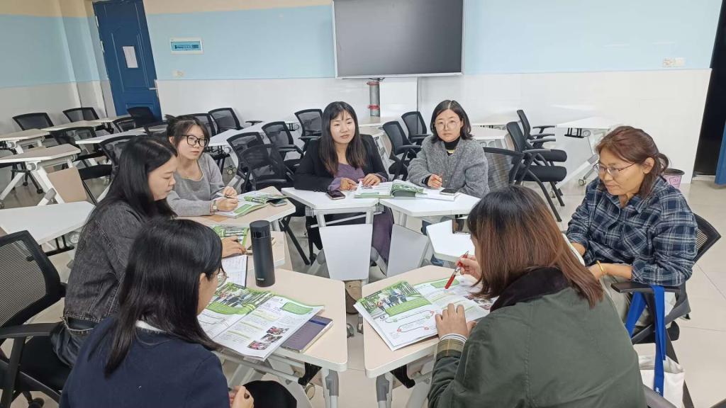 会上,教研室首先聚焦新教材核心特点展开分析。《新未来大学英语综合教程》配套资源丰富,其“U校园”线上平台涵盖海量学习内容,但部分素材与本校学生英语基础、学习需求的适配性仍需调整。基于此,“线上线下混合教学模式的本土化设计”成为本次会议核心议题。研讨环节中,外聘教师结合自身跨校教学经验,从“分层选取线上资源”“简化复杂任务模块”“衔接学生现有知识水平”等方面提出具体建议;本校大英教师则立足日常教学实践,分享学生在平台操作、内容吸收中的实际问题,双方围绕“如何筛选线上核心知识点”“怎样设计线下巩固练习”展开深度交流,最终初步明确“精选线上内容+强化线下互动”的适配思路,为后续教学方案细化奠定基础。