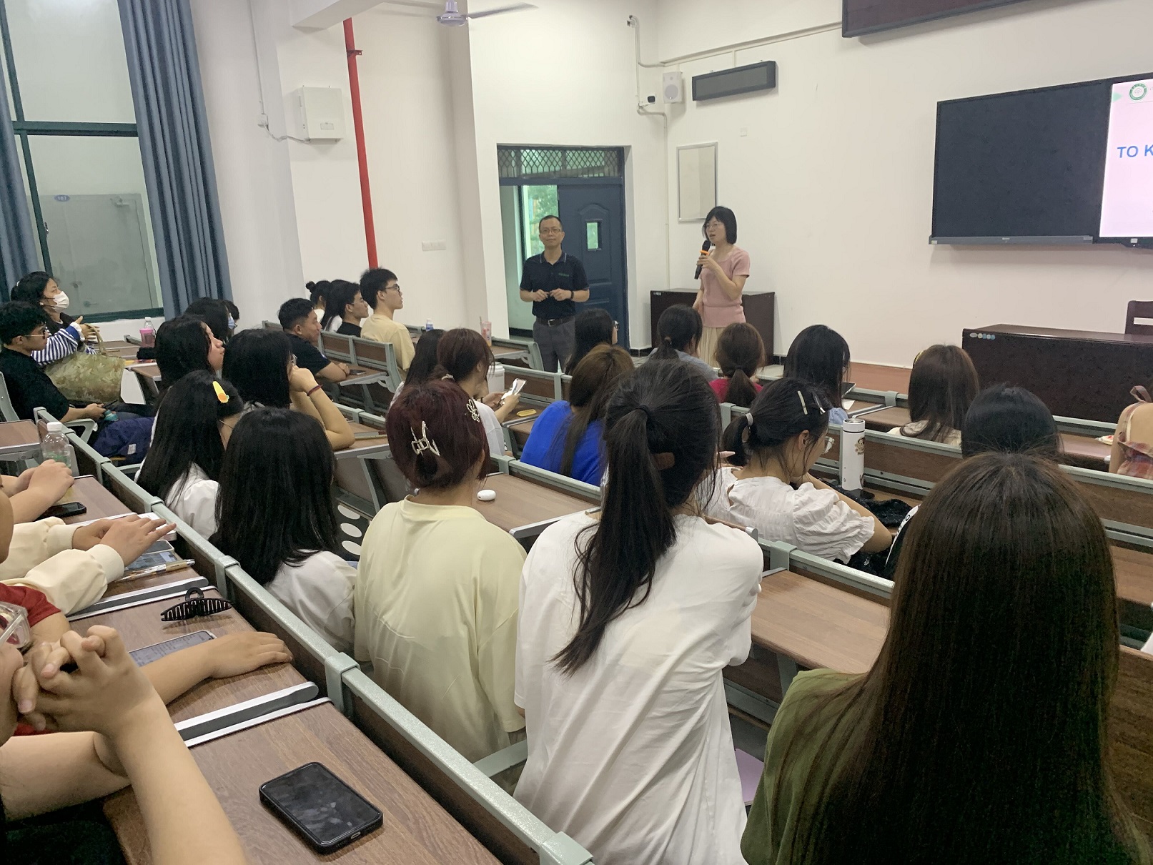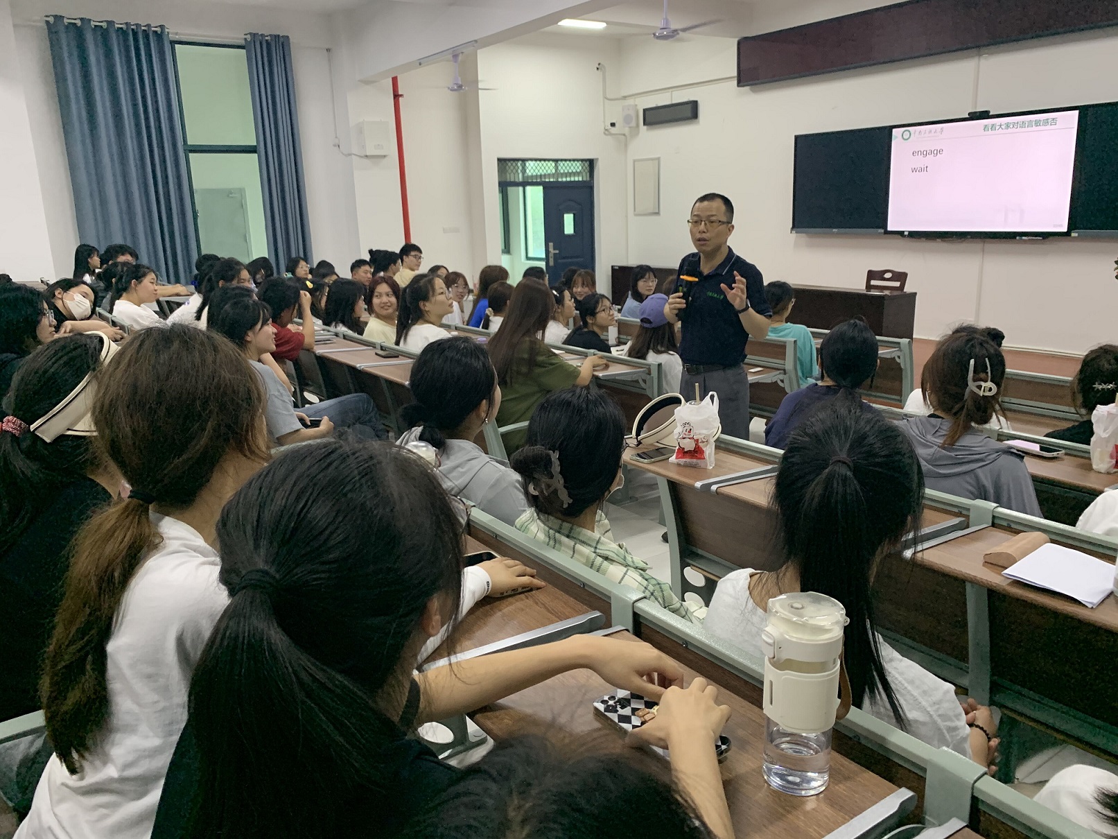 讲座中,皋教授介绍了中南民族大学分级教学的经验和做法,根据学生的英语水平和英语学习需求采用不同的教学方法,着重培养学生的“Teamwork””“communication skills” “public speaking”的能力;教师的“教”不能局限于教材,教材上的内容可以在课前完成,通过在线学习实现,课堂上更多是学生展示环节,最终培养的学生需要具备4R素养,即“ready” “respectful” “resilient” “responsible”。