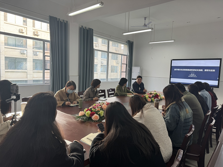 (外语系樊笑)12月8日上午,外语系邀请华中科技大学教授、博士生导师彭仁忠为老师们作了题为“基于跨文化交际视角的科研论文选题、撰写与发表”的学术讲座。讲座由副主任王娟主持,外语系教师聆听了此次讲座。本次活动旨在营造良好学术氛围,激发教师科研积极性,提升教师科研能力,提高跨文化综合素养。