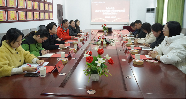 (教育学院 付华安)为加强教育学院专业和课程建设,强化学院办学质量及水平,12月6日,教育学院院长王娟、副院长王文琦率队赴武汉文理学院考察学习,该校教育学院党支部书记兼行政院长陈龙、教学副院长贺霞、外语学院院长陈维良等人亲自接待,热烈开展座谈交流。