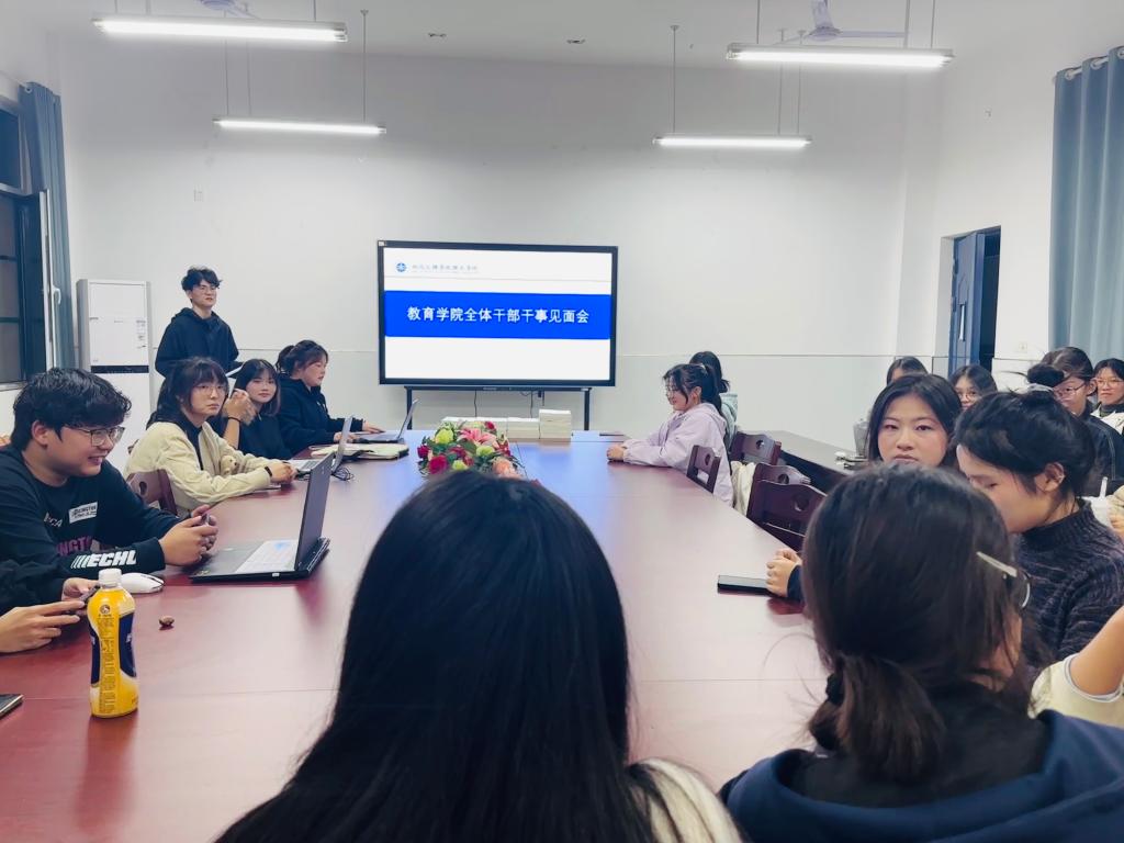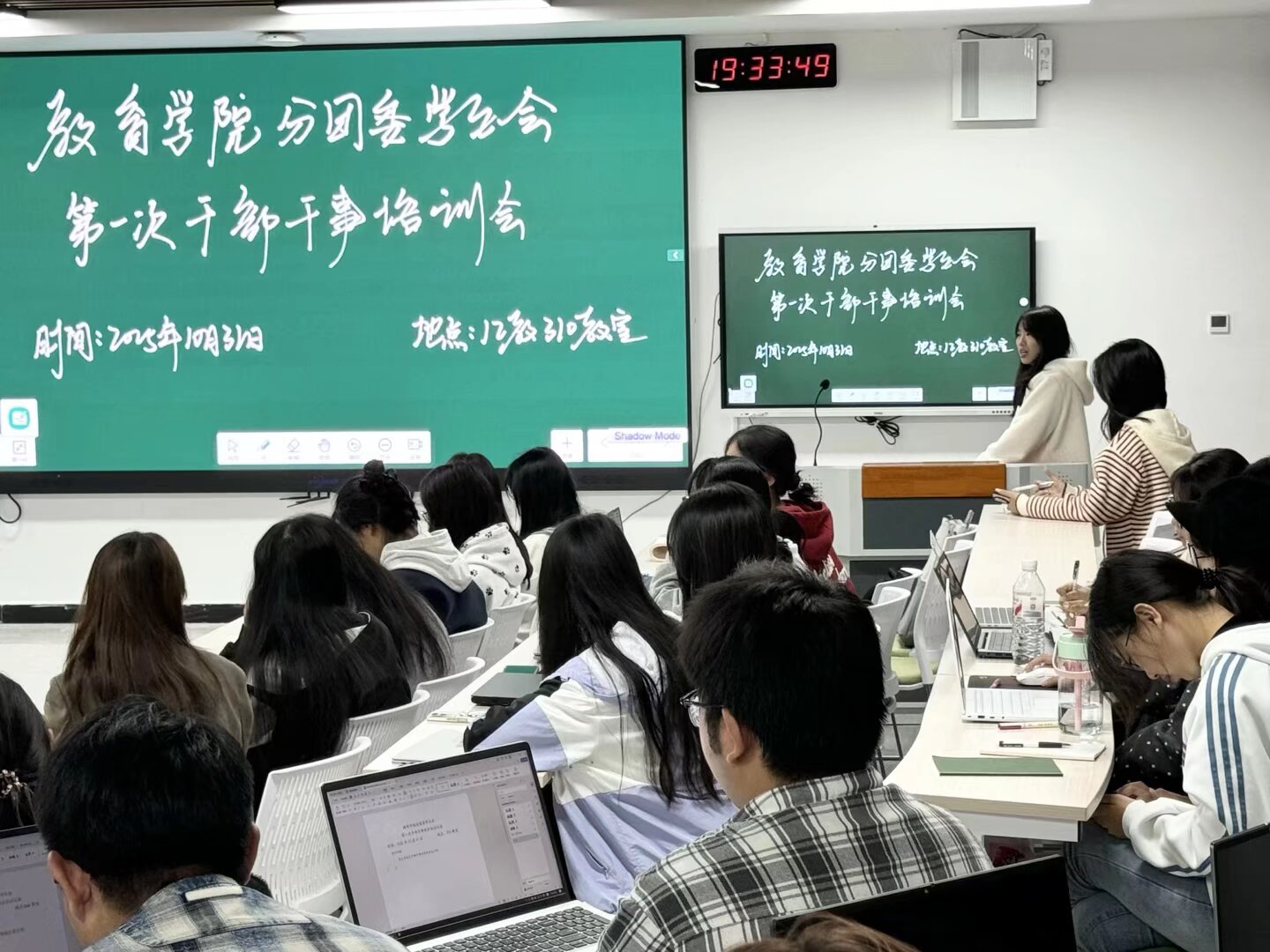 (教育学院 萧秀米)逐光而上聚合力,奋楫扬帆开新局。教育学院分别于10月30日晚在尹集校区8教218教室、10月31日晚在东津校区12栋310教室召开第二届分团委学生会第一次干部干事培训会。