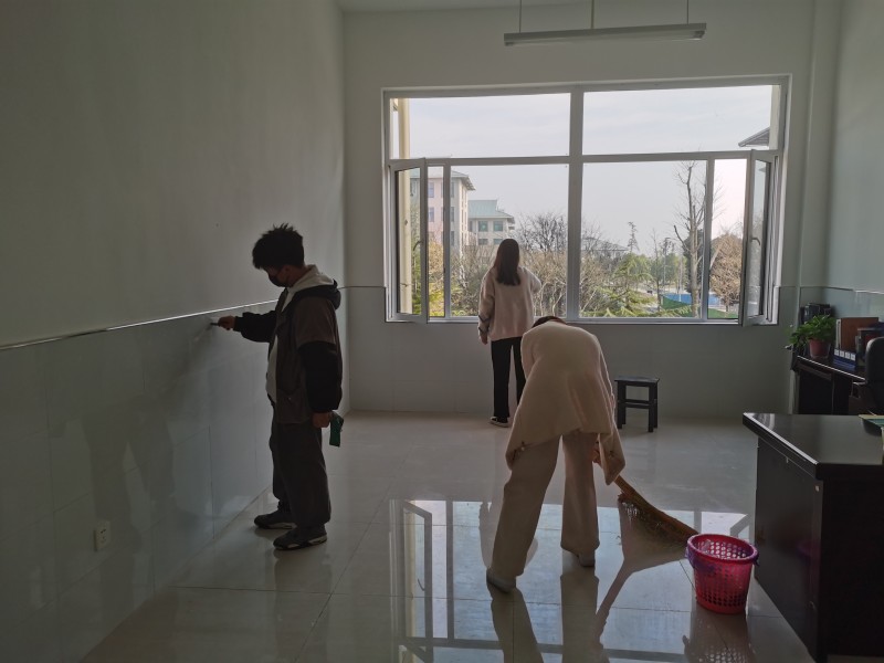 在学生干部的有序组织下,大家纷纷行动起来:抹桌、擦窗、扫地、消毒、搬运垃圾……一项项工作分工明确,有条不紊的进行着。大家干劲满满,欢声笑语不断。