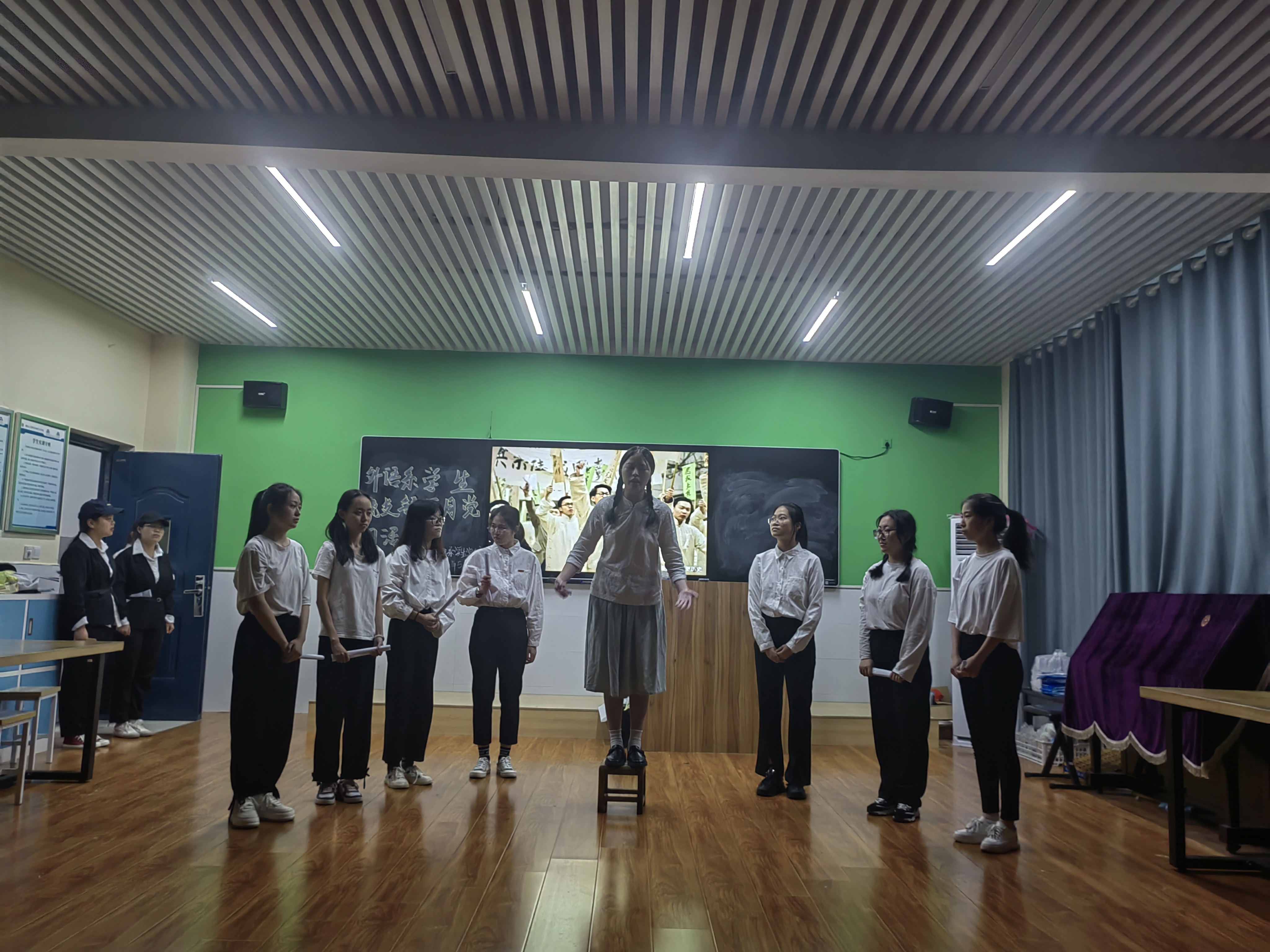 (外语系王晓燕)在“五四”青年节来临之际,5月4日晚,外语系学生党支部组织了以“演绎红色故事,赓续五四精神”为主题的舞台剧活动。