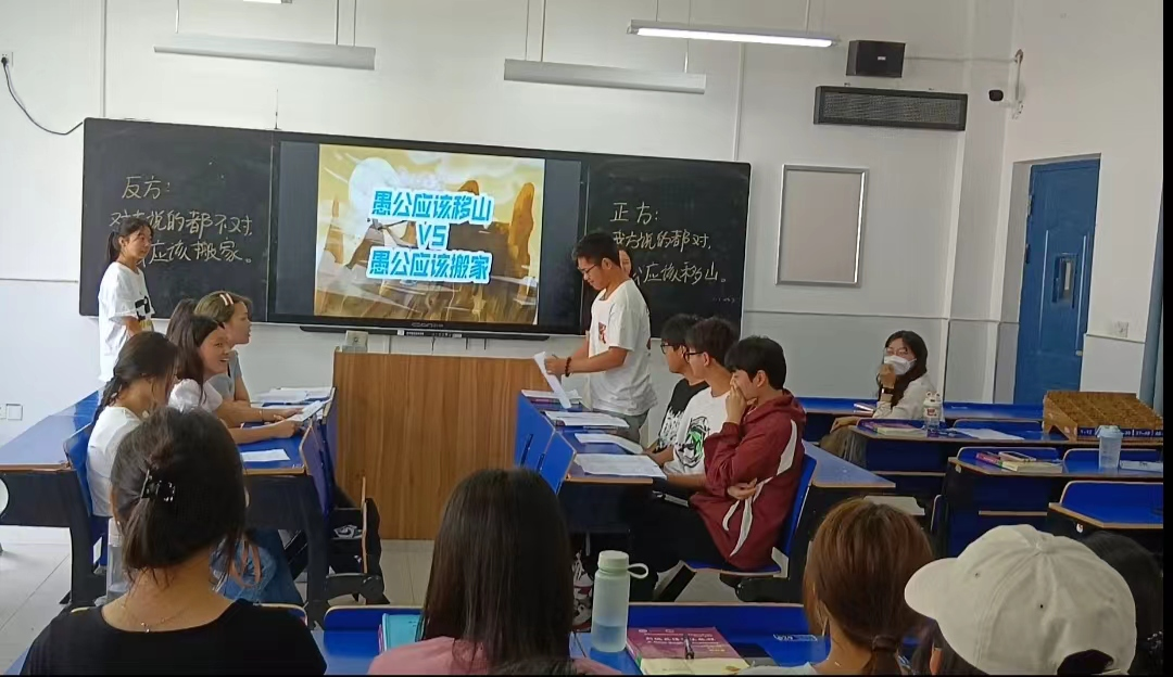 (外语系袁梦)为丰富同学们的课余生活,活跃校园气氛,开拓思想,体现大学生朝气蓬勃、积极向上的精神状态。本着“公平竞争,力争第一”的精神,外语系应英2221班在班主任袁老师的带领下于5月25日上午开展以“想辩就辩--愚公应该移山还是搬家”为主题的辩论赛。