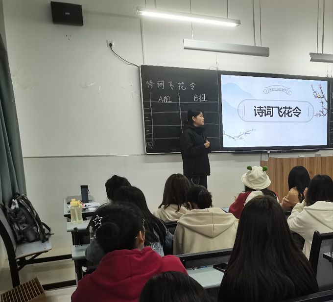 (外语系于楠)为弘扬我国优秀传统文化,感受中华民族文化的美感。6月2日下午,学前2221班全体学生在8教212教室举办“诗词飞花令”主题活动,活动由于楠老师主持。