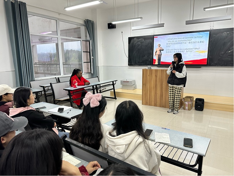 来自英联邦国家津巴布韦的外教老师Savior与同学们进行了学习和交流。本次英语角以“志愿服务”为主题,共分为两个部分。首先,同学们就本次活动主题的相关问题与外教进行口语交流,并分组派代表上台讲述雷锋同志的精神故事。外教老师向代表同学提问,深入了解雷锋的英勇事迹,并对学生的英语表现给予点评。接下来是角色扮演竞赛,每组同学领到不同的任务,用英语表演让座、指路等“学雷锋、做好事”情景。同学们表现得活灵活现,整个活动过程精彩纷呈。最后,外教老师评选出表现最好的小组,并由英语乐园颁发小奖品。