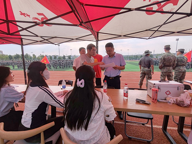 军训期间,学生工作部部长宋功成来到东津校区训练场对2024级新生军训情况进行视察,与军训教官、后勤保障人员热情交流,详细了解训练计划和进展情况,叮嘱军训教官要认真落实训练计划、确保训练质量,参训学生要提升身体状态,积极完成训练任务,要求后勤保障工作要考虑细致、安排周全、保障到位。