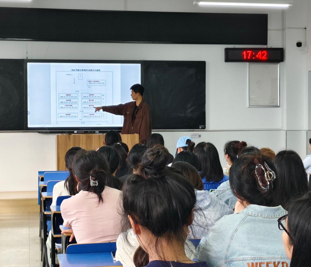 会议伊始,学生会负责人分别在两校区详细介绍了迎新工作的流程和注意事项。从新生报到的地点、手续办理的步骤,到志愿者的职责分工和服务规范,都进行了全面而细致的讲解。负责人特别强调了志愿者要保持热情、耐心和细心,积极主动地为新生提供帮助,解答他们的疑问。
