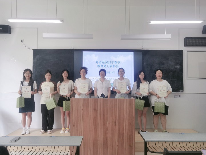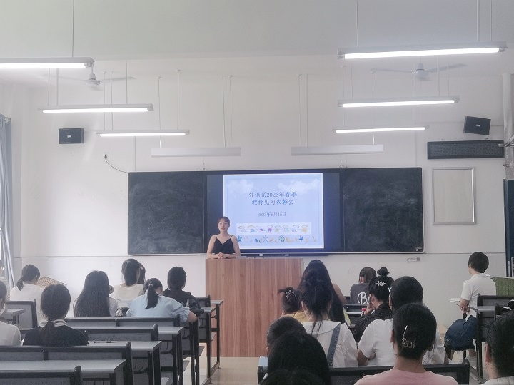 (外语系 滕会启)2023年6月15日下午,外语系在8教212教室召开了2023年春季学前教育专业实习总结表彰大会,外语系副主任王婷婷,实习指导老师滕会启,20级和21级优秀实习代表们出席了会议。